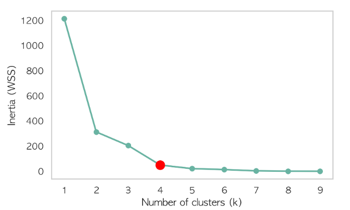 K-means 클러스터링의 최적 군집 수를 찾는 Elbow Method를 사용한 결과, 4개의 허브를 구축하는 것이 가장 효율적이라는 결론을 얻었습니다.